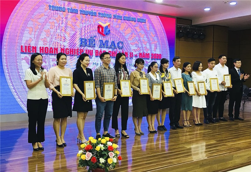Phóng viên Trung tâm TT-VH thành phố nhận giải tại Liên hoan nghiệp vụ Báo chí Tỉnh.