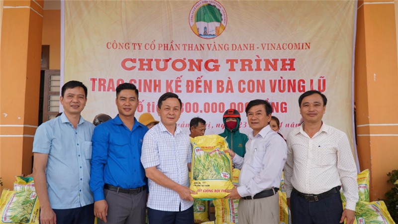 Anh Lê Hùng Thắng (thứ hai, trái sang) trong Chương trình thiện nguyện trao sinh kế cho bà con vùng lũ tại tỉnh Quảng Trị năm 2020.