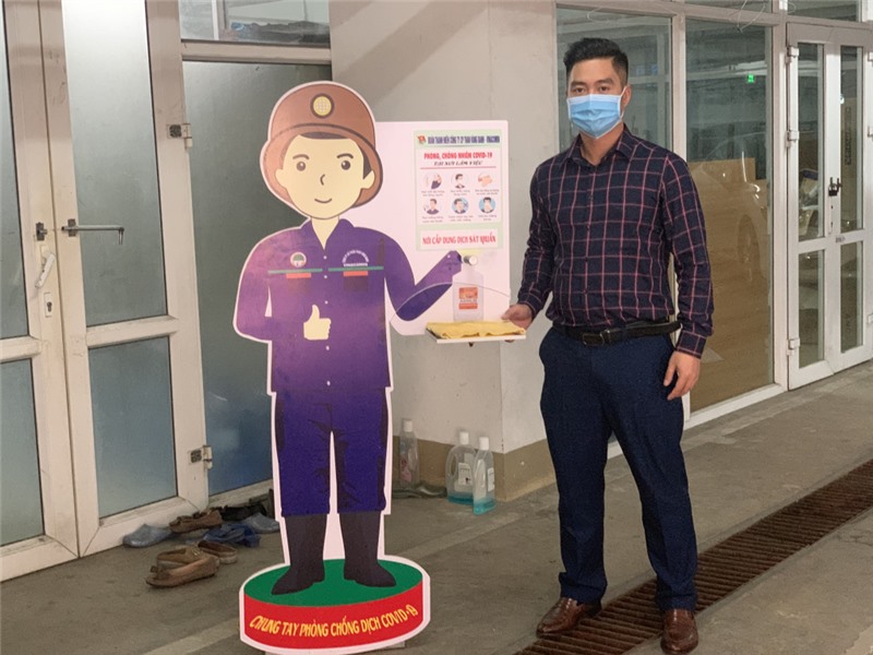 Anh Lê Hùng Thắng với sáng kiến lắp đặt hoàn chỉnh hệ thống phun dịch sát khuẩn dạng gel tự động kết hợp pano tuyên truyền phòng, chống dịch Covid-19.
