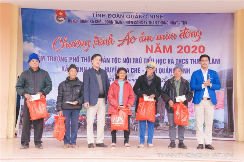 Anh Trần Văn Đại (ngoài cùng bên phải) trong Chương trình "Áo ấm mùa đông năm 2020" tại huyện Ba Chẽ.