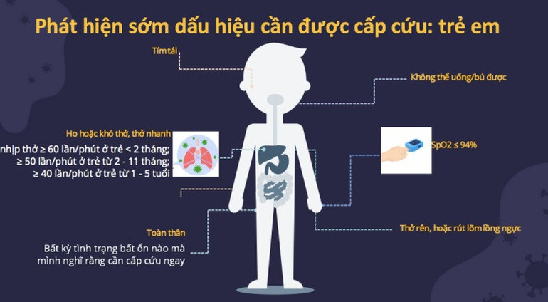 Thể nặng và nguy kịch là khi bão hòa oxy tụt, trẻ kém ăn, bỏ bú, tổn thương phổi rõ rệt, thậm chí có trường hợp bị sốc, suy đa phủ tạng, phải thở máy…