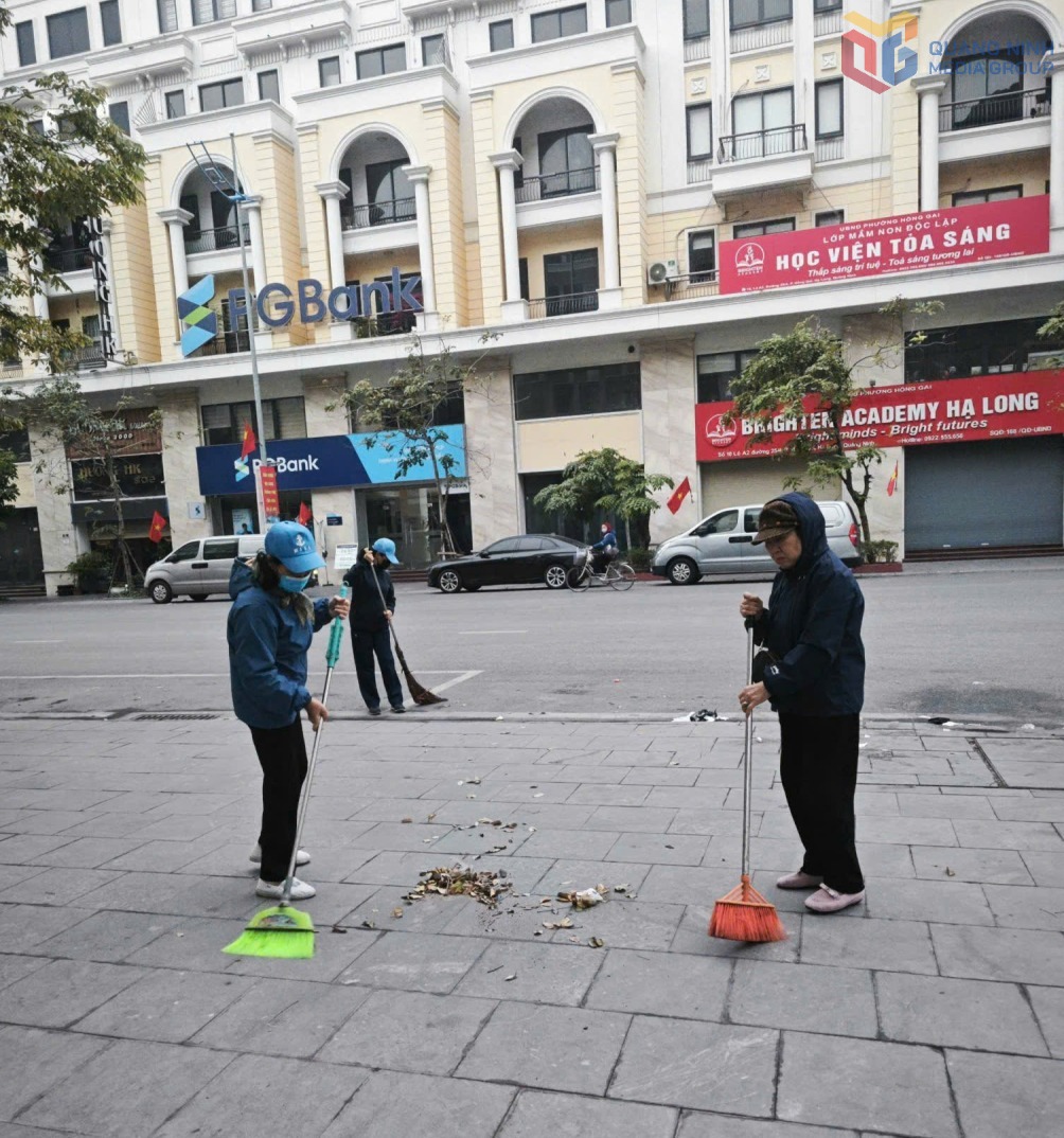 Nhân dân phường Hồng Gai tham gia vệ sinh đường phố trong "Ngày chủ nhật xanh".