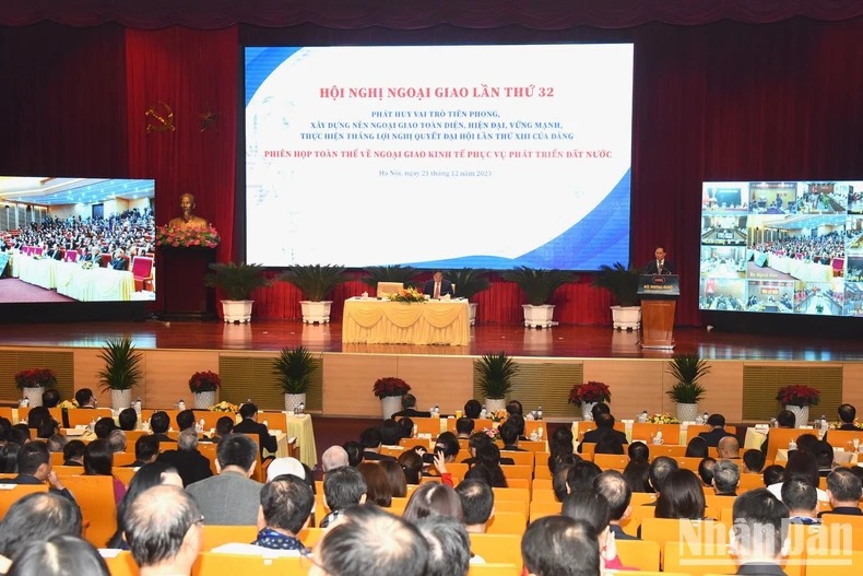 Trong bối cảnh đó, bám sát đường lối đối ngoại Đại hội XIII của Đảng, các chỉ đạo của Bộ Chính trị, Ban Bí thư và các đồng chí lãnh đạo Đảng, Nhà nước và Chính phủ, phát huy mạnh mẽ bản sắc "ngoại giao cây tre Việt Nam", vừa kiên định về nguyên tắc, vừa uyển chuyển về sách lược, linh hoạt, sáng tạo nhưng rất bản lĩnh, kiên cường vì lợi ích quốc gia-dân tộc, ngành ngoại giao đã khắc phục nhiều khó khăn, thử thách, cùng các ngành, các cấp triển khai đồng bộ, hiệu quả các trụ cột, binh chủng đối ngoại và ngoại giao. Như đồng chí Tổng Bí thư Nguyễn Phú Trọng đã đánh giá tại Phiên toàn thể khai mạc Hội nghị Ngoại giao 32, công tác đối ngoại trong 3 năm qua đã “đạt nhiều kết quả, thành tựu quan trọng, có ý nghĩa lịch sử, trở thành một điểm sáng đầy ấn tượng trong toàn bộ những kết quả, thành tựu chung của đất nước trong những năm qua”.
