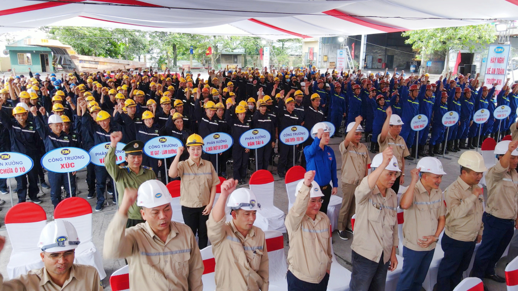Hội đồng ATVSLĐ tỉnh phối hợp với Tập đoàn Công nghiệp Than - Khoáng sản Việt Nam tổ chức Lễ phát động Tháng hành động về ATVSLĐ, Tháng Công nhân năm 2024. Ảnh: Quốc Thắng