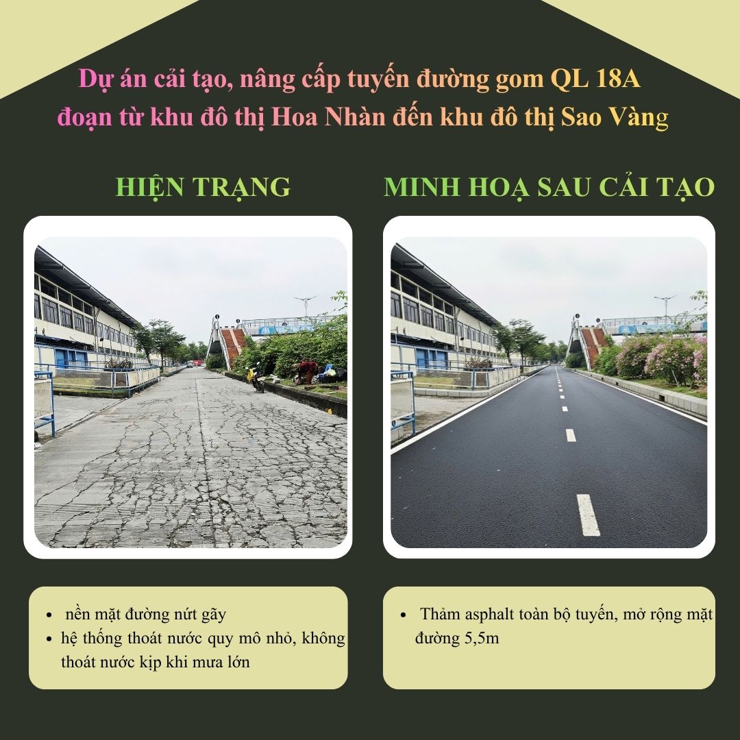 Dự án cải tạo, nâng cấp tuyến đường gom Quốc lộ 18A đoạn từ khu đô thị Hoa Nhàn đến khu đô thị Sao Vàng