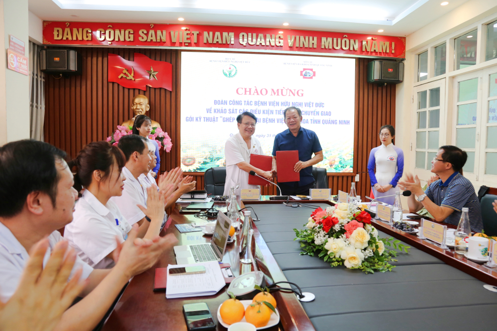 Ngày 31/5 vừa qua, Bệnh viện Hữu nghị Việt Đức đã có buổi làm việc để khảo sát, đánh giá khả năng tiếp nhận chuyển giao kỹ thuật ghép thận tại 2 bệnh viện: Đa khoa tỉnh và Việt Nam - Thụy Điển Uông Bí. Theo đó, tiến sĩ, bác sĩ Dương Đức Hùng, Giám đốc Bệnh viện Hữu nghị Việt Đức đã ký biên bản hợp tác về ghép thận với Giám đốc Bệnh viện Đa khoa tỉnh và Giám đốc Bệnh viện Việt Nam - Thụy Điển Uông Bí.