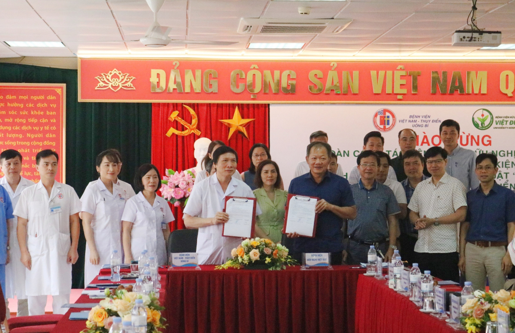 Đại diện lãnh đạo Bệnh viện Hữu nghị Việt Đức (Hà Nội) và Bệnh viện Việt Nam -Thụy Điển Uông Bí thống nhất ký biên bản hợp tác về ghép thận.