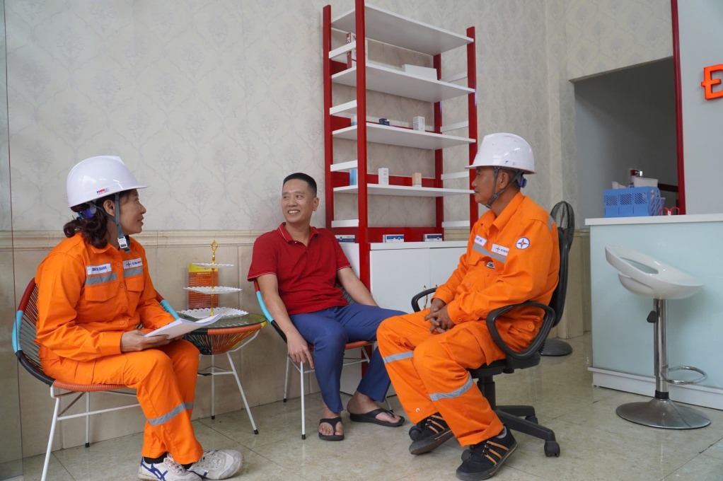 Công nhân Điện lực TP Hạ Long làm việc với khách hàng lấy thông tin chuẩn hóa thông tin chủ thể HĐMBĐ.