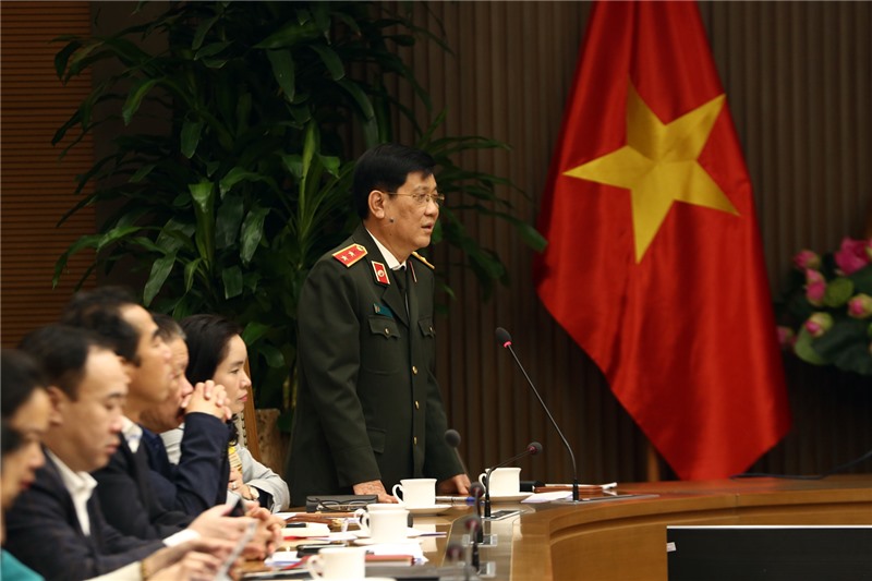 Thứ trưởng Bộ Công an Nguyễn Văn Sơn phát biểu tại cuộc họp. Ảnh: VGP/Đình Nam