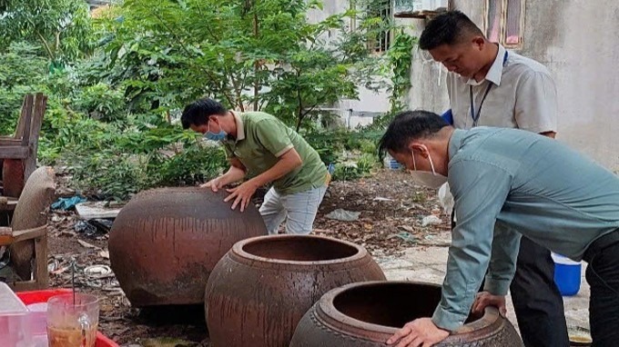 Lật úp các dụng cụ không chứa nước để muỗi không vào đẻ trứng. (Ảnh: HCDC)