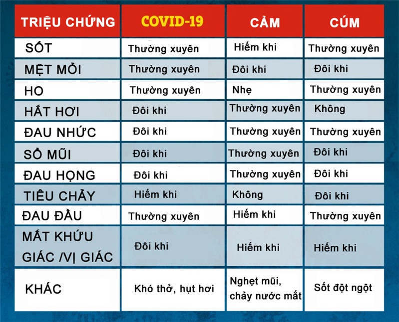 So sánh các triệu chứng của Covid-19 nói chung với cảm, cúm