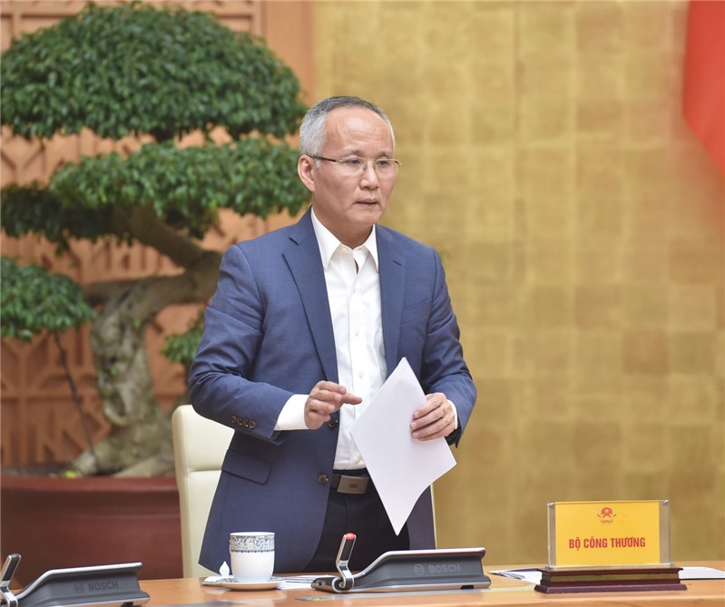 Thứ trưởng Bộ Công Thương Trần Quốc Khánh báo cáo tình hình tại cuộc họp. Ảnh: VGP/Đức Tuân
