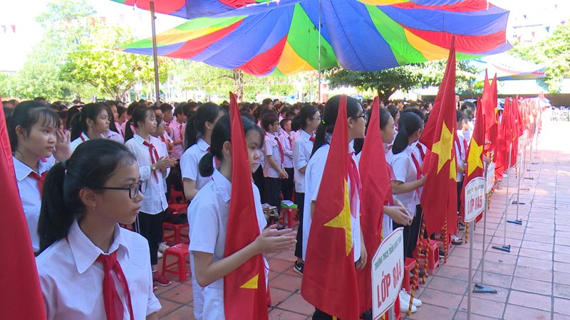 Đông đảo các em học sinh tham dự buổi lễ khai giảng.