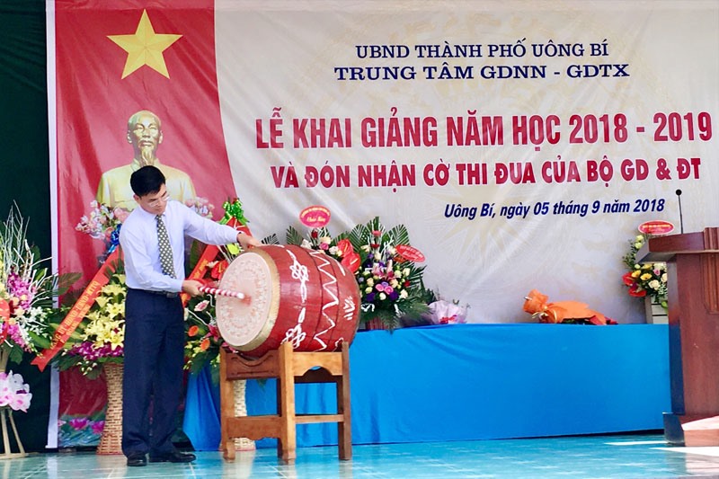 Sáng 5-9, Trung tâm giáo dục nghề nghiệp - Giáo dục thường xuyên TP Uông Bí tổ chức Lễ khai giảng năm học 2018-2019 và đón nhận Cờ thi đua của Bộ Giáo dục-Đào tạo. Dự, chúc mừng có các đồng chí Trần Danh Chức - Chủ tịch Liên đoàn lao động tỉnh; Nguyễn Mạnh Hà - Phó Bí thư Thành ủy, Chủ tịch UBND thành phố.