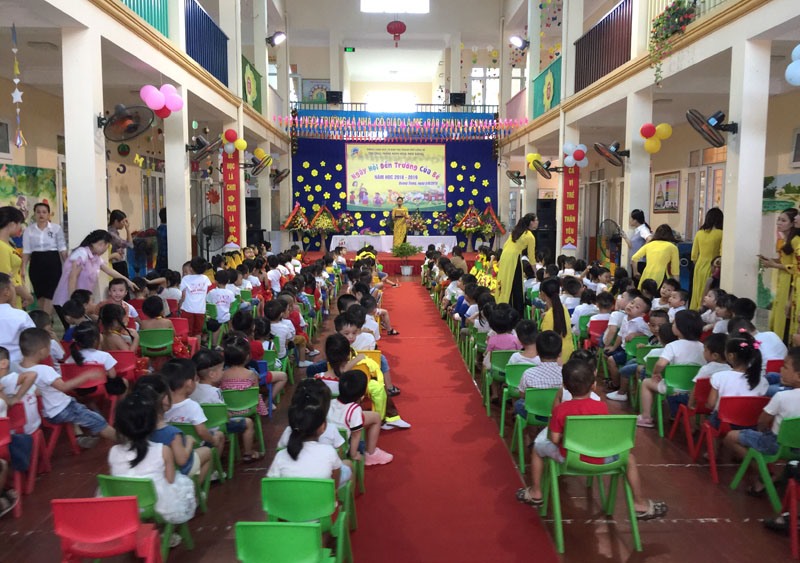 Quang cảnh ngày hội đến trường của bé tại Trường Mầm non Hoa Mai Vàng.