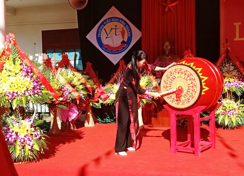 * Đồng chí Hoàng Thị Hà, Phó Bí thư Thường trực Thành ủy dự khai giảng tại Trường Tiểu học Yên Thanh