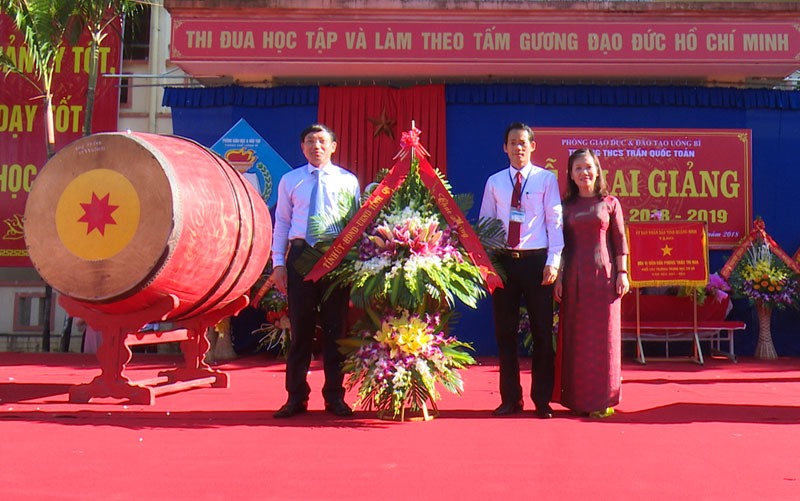 Tại lễ khai giảng, thay mặt lãnh đạo thành phố, đồng chí Đặng Đình Sách, Ủy viên BTV, Phó Chủ tịch UBND thành phố đã phát biểu, tặng hoa chúc mừng thầy trò nhà trường và gióng trống khai giảng năm học mới, năm học 2018-2019.