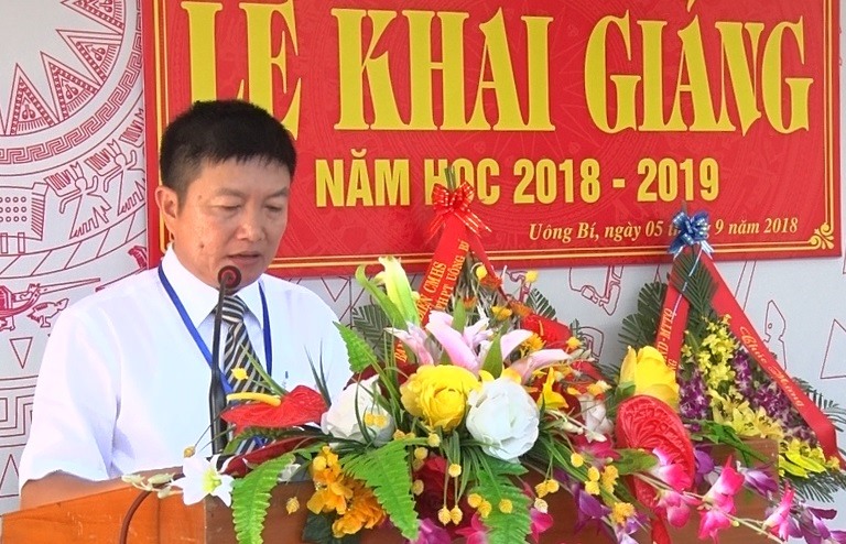 Đồng chí Đặng Đình Sách, Phó Chủ tịch UBND thành phố phát biểu chúc mừng nhân dịp khai giảng năm học mới tại Trường THPT Uông Bí.