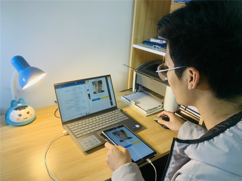 Em Nguyễn Thành Minh kiểm tra lại phầm mềm trông giữ xe thông minh.