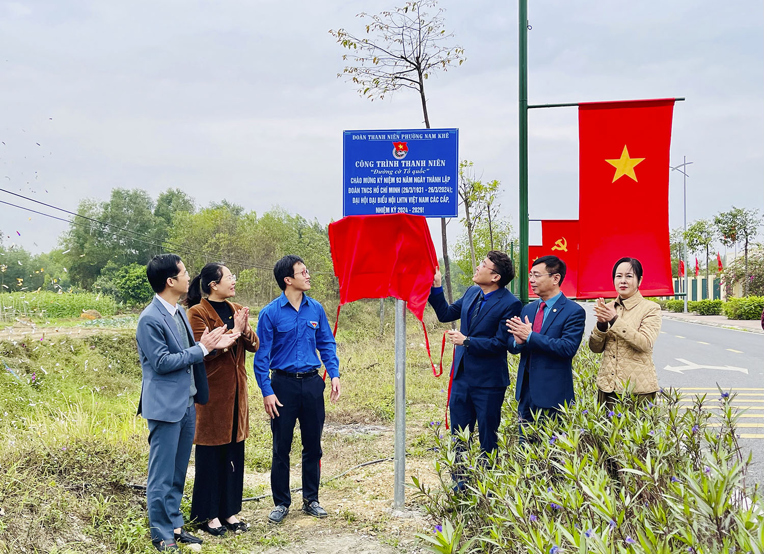 Gắn biển công trình Đường cờ Thanh niên phường Nam Khê.