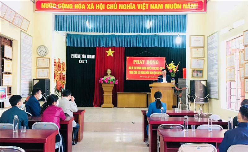 Cũng trong sáng ngày 19/12, tại Khu Lạc Thanh, phường Yên Thanh đã tổ chức phát động ủng hộ kinh phí mua test nhanh kháng nguyên virus SARS-CoV-2 và test nhanh sàng lọc trong khu dân cư. Hoạt động sẽ tiếp tục được triển khai rộng rãi tại các khu dân cư còn lại trên địa bàn phường.