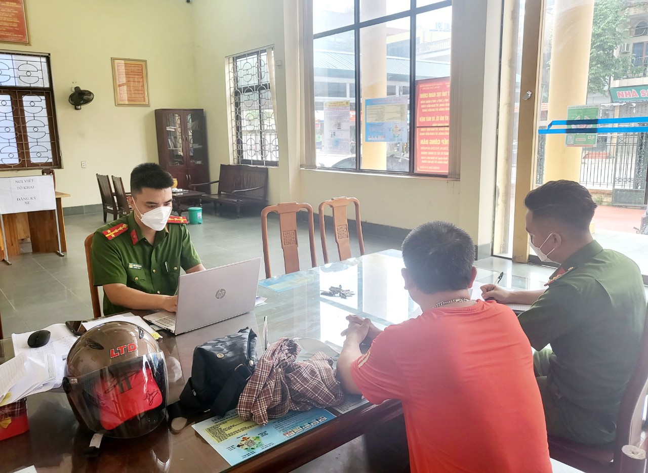 Lấy lời khai của đối tượng N.B.L tại Trụ sở Công an phường Quang Trung.