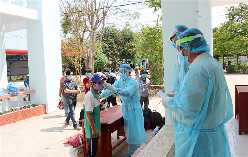Đo thân nhiệt các trường hợp cách ly tập trung. Ảnh: baoangiang.com.vn