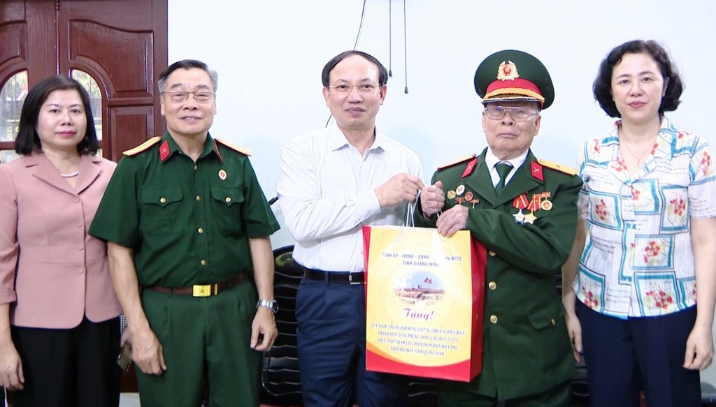 Bí thư Tỉnh ủy, Chủ tịch HĐND tỉnh Nguyễn Xuân Ký cùng lãnh đạo Hội Cựu chiến binh tỉnh và TP Hạ Long hỏi thăm sức khỏe cựu chiến binh Trần Văn Đào, ở khu 1, phường Yết Kiêu (TP Hạ Long).