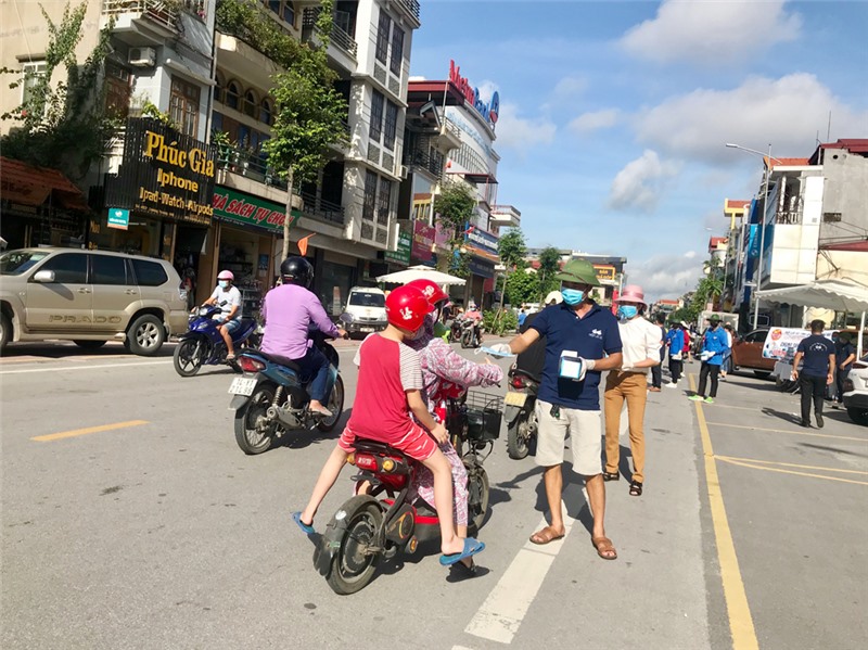 Một số hình ảnh các lực lượng phát khẩu trang cho người dân trên địa bàn TP Uông Bí: