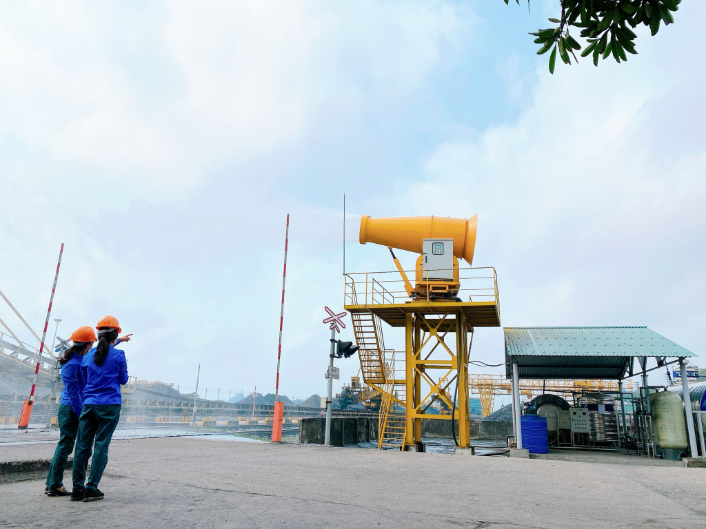Hệ thống phun sương dập bụi cao áp tầm xa của Công ty Tuyển than Cửa Ông. Ảnh: Hạ An