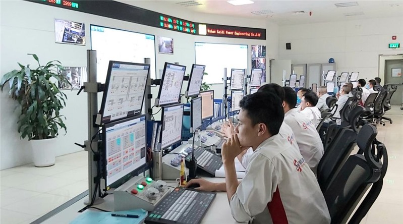 Cán bộ Trung tâm điều khiển, Công ty CP Nhiệt điện Thăng Long, theo dõi các chỉ số về môi trường trong sản xuất. Ảnh: Trung Anh