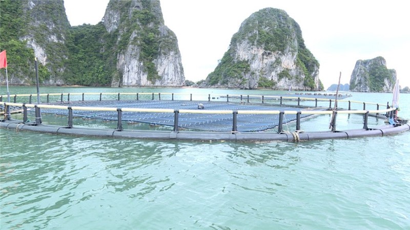 Lồng bè, phao nổi bằng nhựa HDPE được lắp đặt mẫu tại một số hộ nuôi trồng thủy sản xã Hạ Long (huyện Vân Đồn). Ảnh: Hoàng Giang