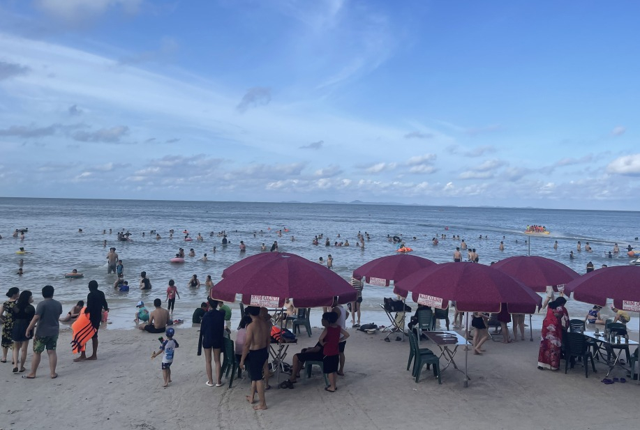 Khách du lịch nghỉ dưỡng tại đảo Quan Lạn (Vân Đồn) tăng mạnh vào những dịp cuối tuần.