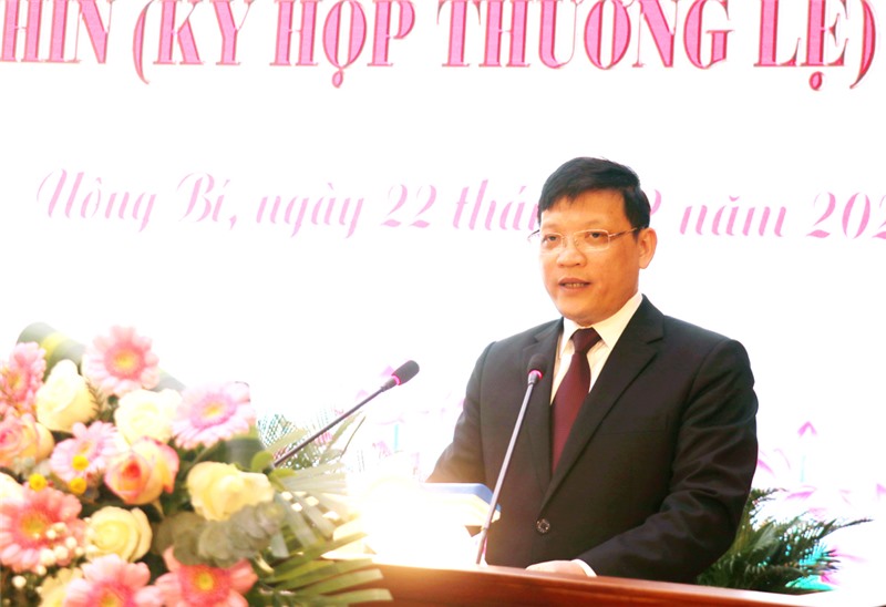 Đồng chí Nghiêm Xuân Cường, Tỉnh ủy viên, Bí thư Thành ủy phát biểu chỉ đạo tại kỳ họp