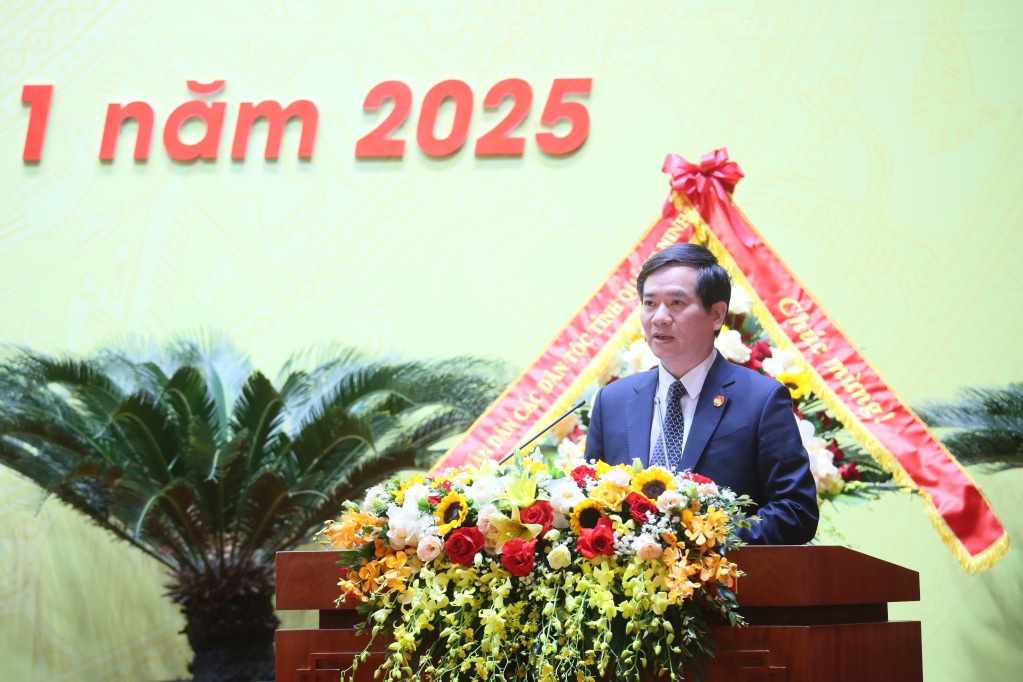 Đồng chí Nguyễn Chí Thành, Ủy viên Ban Thường vụ Tỉnh ủy, Phó Chủ tịch Thường trực Ủy ban MTTQ tỉnh, phát biểu khai mạc phiên làm việc thứ nhất.