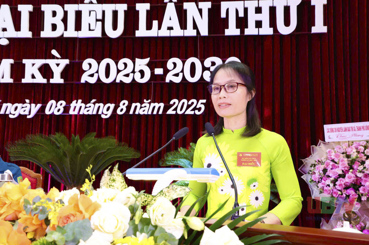 Đồng chí Trần Thị Hồng Thu, Phó Trưởng Ban Xây dựng Đảng, tham luận tại Đại hội.