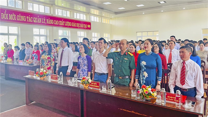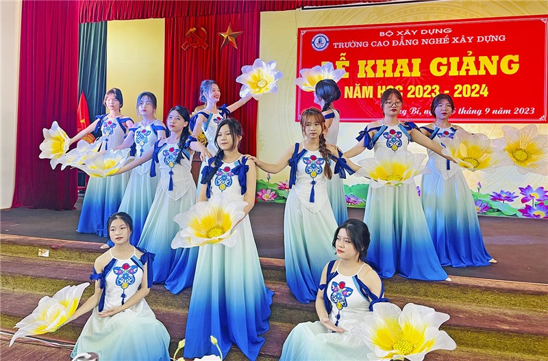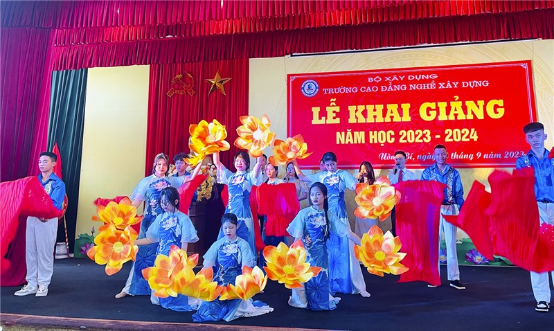 Lễ khai giảng diễn ra trong không khí trang trọng, vui tươi. Phát biểu diễn văn khai giảng năm học mới 2023-2024, Tiến sỹ Nguyễn Thị Hoài, Phó Bí thư Đảng uỷ, Hiệu trưởng nhà trường khẳng định, qua 50 năm xây dựng và phát triển, Trường Cao đẳng nghề Xây dựng ngày càng khẳng định được thương hiệu và uy tín trong công tác giáo dục, đào tạo nghề. Đặc biệt năm học 2022-2023, nhà trường đã nỗ lực, quyết tâm, gặt hái nhiều thành tích trên tất cả các lĩnh vực. Nổi bật là: Công tác tuyển sinh đạt vượt mức kế hoạch cấp trên giao; chất lượng đào tạo không ngừng được nâng lên; trường đạt tiêu chuẩn kiểm định chất lượng cơ sở giáo dục nghề nghiệp; tỷ lệ học sinh tốt nghiệp các cấp trình độ đạt 98,9%; tỷ lệ tốt nghiệp khoá song bằng đầu tiên đạt 98,7%; có nhiều học sinh đỗ vào các trường Đại học; thầy và trò nhà trường đang tích cực ôn luyện tham gia thi kỹ năng nghề cấp tỉnh, nhà giáo giỏi các cấp; văn hoá, kỉ cương trường lớp được hình thành đi vào nề nếp; nhà trường đã kí nhiều bản thoả thuận, bản ghi nhớ với các doanh nghiệp, đối tác trong đào tạo…