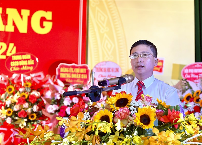 Thạc sĩ Vũ Xuân Quyên, Bí thư Đảng uỷ, Chủ tịch Hội đồng trường, Phó Hiệu trưởng nhà trường phát biểu tại lễ khai giảng.