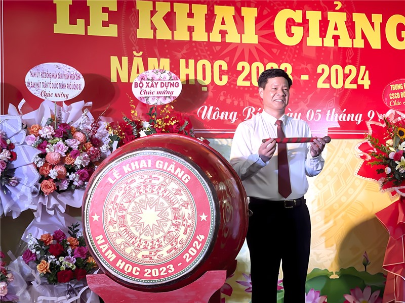 Tại lễ khai giảng, đồng chí Phạm Tuấn Đạt, Phó Bí thư Thành uỷ, Chủ tịch UBND thành phố đã gióng trống khai giảng năm học mới 2023-2024 và tặng hoa chúc mừng tập thể lãnh đạo, cán bộ, giáo viên, học sinh Trường Cao đẳng nghề Xây dựng; tin tưởng nhà trường sẽ tiếp tục đoàn kết, nỗ lực, tâm huyết hoàn thành xuất sắc nhiệm vụ năm học mới.