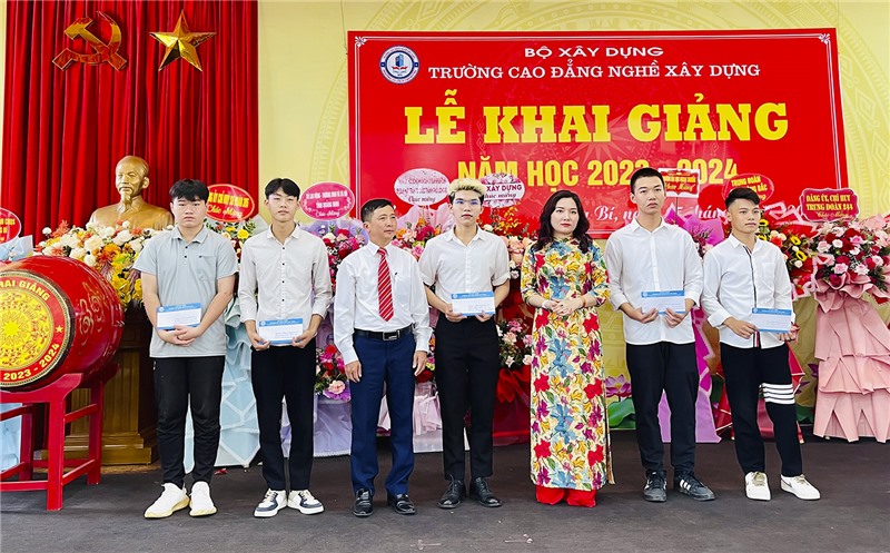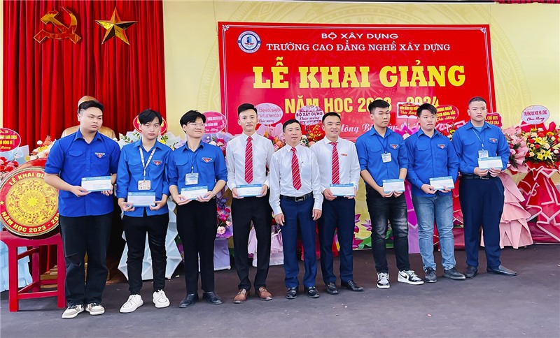 Nhân dịp này, Trường Cao đẳng nghề Xây dựng đã khen thưởng Đoàn tham gia dự thi Cuộc thi sân khấu hoá “Quảng Ninh 60 năm xây dựng và phát triển”; biểu dương học sinh đạt danh hiệu học sinh giỏi cấp tỉnh năm học 2022-2023; khen thưởng học sinh có kết quả học tập tốt trong năm học 2022-2023; học sinh đạt thành tích cao trong kỳ thi tốt nghiệp THPT năm học 2022-2023 và đỗ vào các trường Đại học; khen thưởng viên chức, giáo viên, học sinh có thành tích xuất sắc hoạt động ngoại khoá năm học 2023-2024. Ngoài ra, Hội Chữ thập đỏ thành phố và các doanh nghiệp đã có 10 phần quà hỗ trợ 10 học sinh có hoàn cảnh khó khăn của nhà trường.