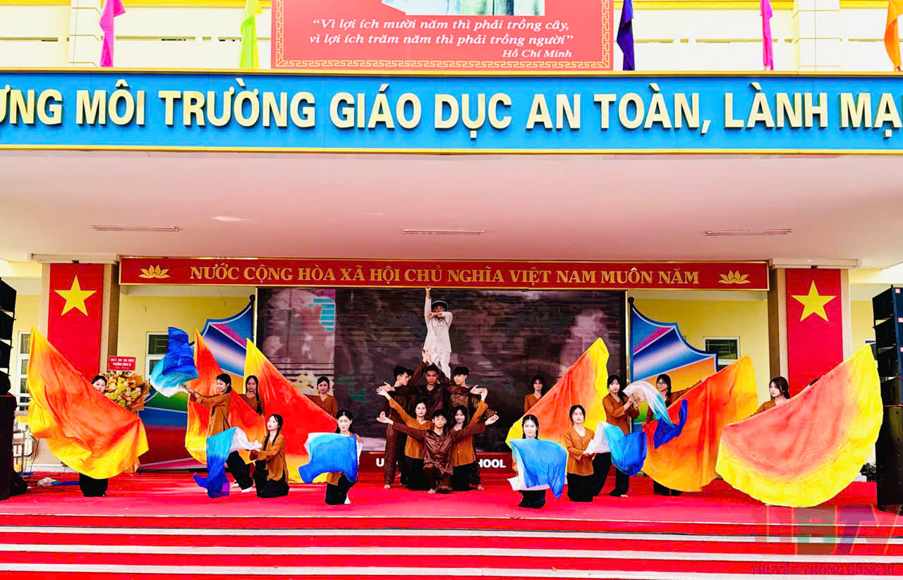 Tiếp đó, toàn thể đại biểu, cán bộ, giáo viên và học sinh nhà trường đã dự theo hình thức trực tuyến chương trình Kỷ niệm 80 năm thành lập Bộ Giáo dục Quốc gia (nay là Bộ Giáo dục và Đào tạo) và Lễ khai giảng năm học 2025-2026 tại Trung tâm Hội nghị Quốc gia.