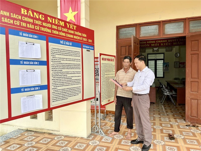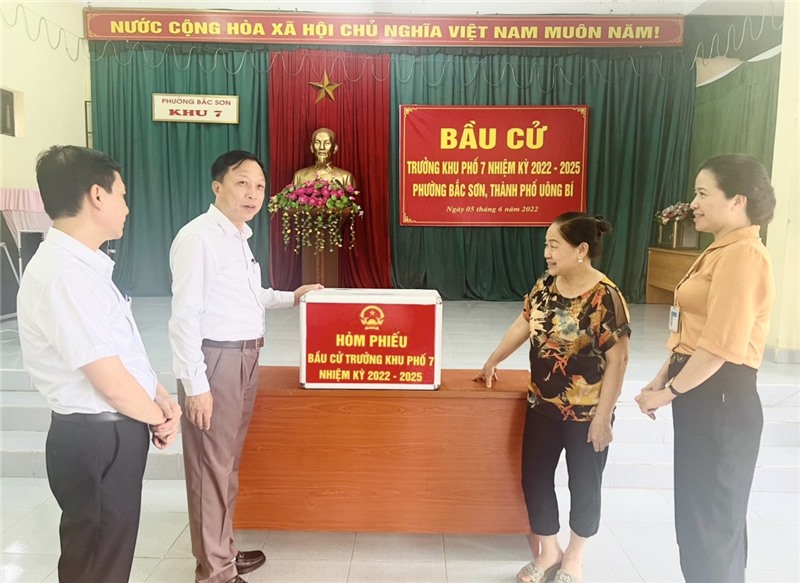 Phó Bí thư Thường trực Thành ủy Nguyễn Chiến Thắng kiểm tra công tác chuẩn bị bầu cử Trưởng thôn, khu tại phường Bắc Sơn, Vàng Danh, xã Thượng Yên Công
