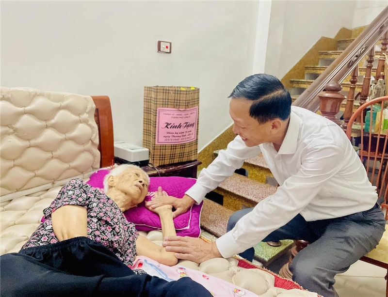 Lãnh đạo Thành ủy thăm, tặng quà bệnh binh Đinh Xuân Kháng, phường Bắc Sơn.
