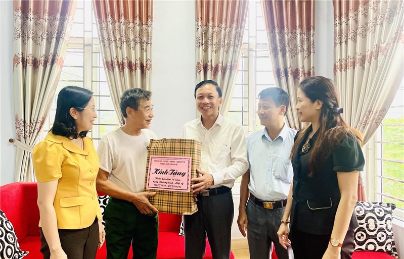 Lãnh đạo Thành ủy thăm, tặng quà gia đình thương binh Ngô Xuân Vĩnh, phường Quang Trung.
