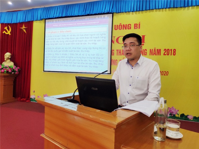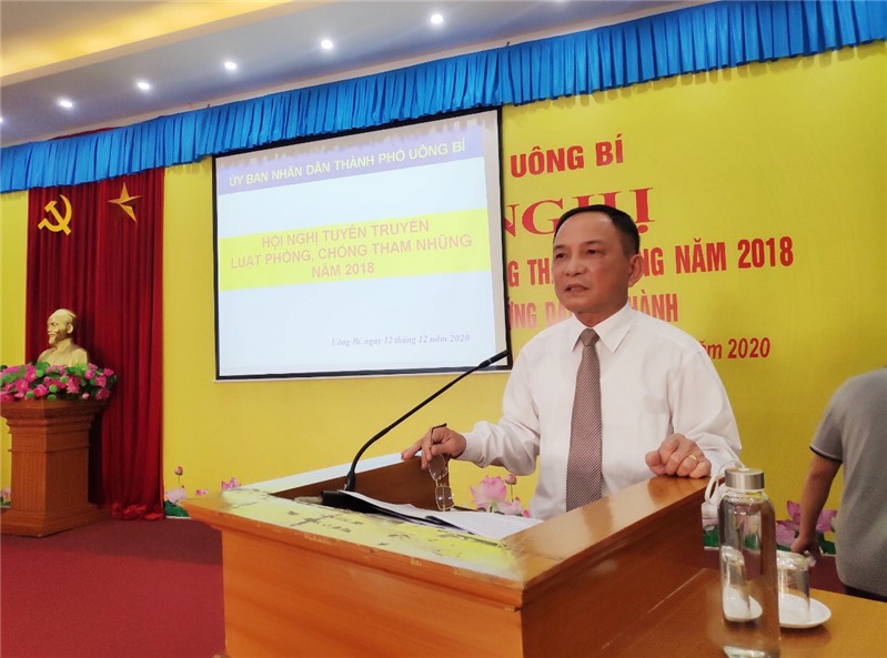 Ngày 12/12, thành phố Uông Bí tổ chức hội nghị phổ biến Luật phòng chống tham nhũng năm 2018 và các văn bản hướng dẫn thi hành. Đồng chí Nguyễn Văn Thành, UVBTV Thành ủy, Phó chủ tịch UBND thành phố dự chỉ đạo.