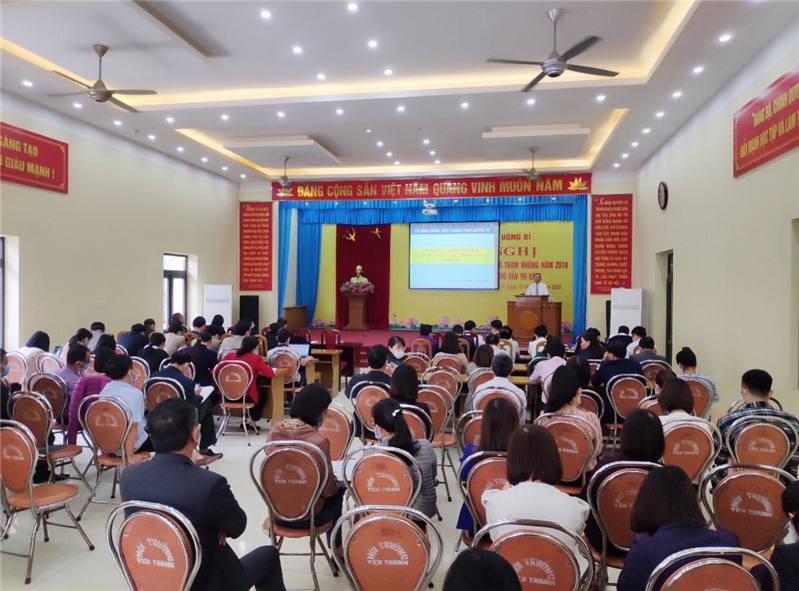 Tham dự hội nghị có lãnh đạo, công chức, viên chức thuộc diện kê khai tài sản, thu nhập cá nhân tại các cơ quan, ban ngành, xã phường thuộc UBND thành phố.