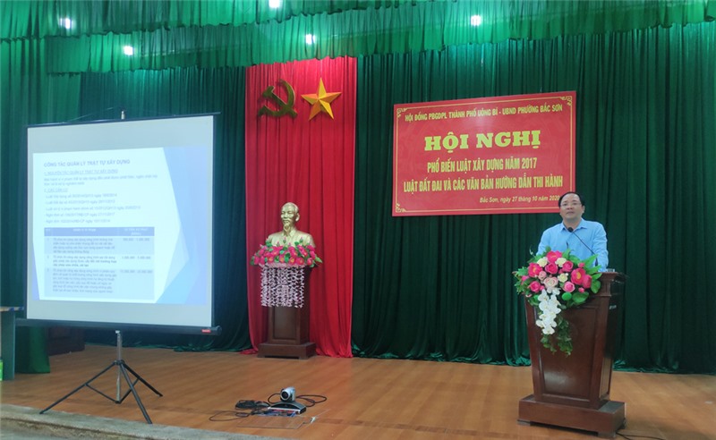 Ngày 28-10, Hội đồng phổ biến giáo dục pháp luật thành phố phối hợp với UBND phường Bắc Sơn tổ chức hội nghị phổ biến Luật xây dựng, Luật Đất đai và các văn bản hướng dẫn thi hành.