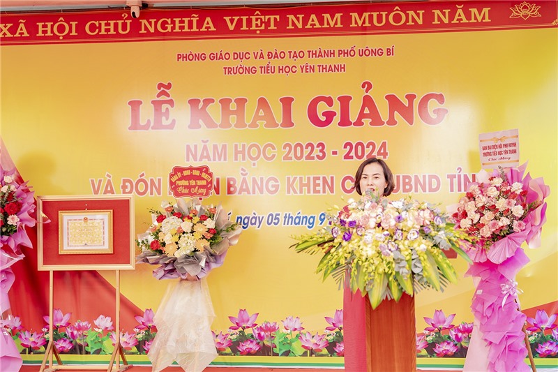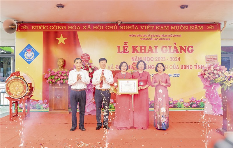 Sáng 5/9, đồng chí Đỗ Trường Sơn, Uỷ viên BTV Thành uỷ, Phó Chủ tịch HĐND thành phố dự lễ khai giảng năm học 2023-2024 và đón nhận Bằng khen của UBND tỉnh tại Trường Tiểu học Yên Thanh. Cùng dự có đồng chí Cù Văn Thắng, Chủ tịch LĐLĐ thành phố; đại diện Phòng Giáo dục Đào tạo; lãnh đạo phường Yên Thanh cùng đại diện cha mẹ học sinh.