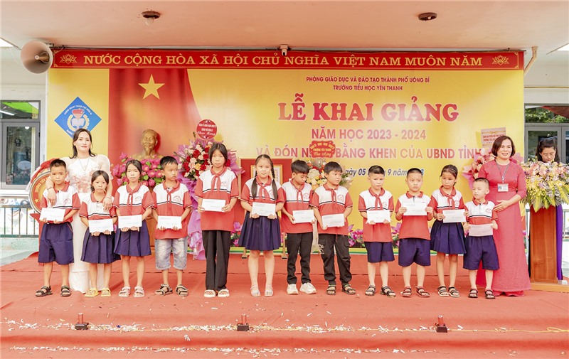 Nhân dịp này, Trường Tiểu học Yên Thanh trao 12 suất quà hỗ trợ 12 học sinh có hoàn cảnh khó khăn, nhằm động viên, khích lệ các em vươn lên trong học tập và cuộc sống.