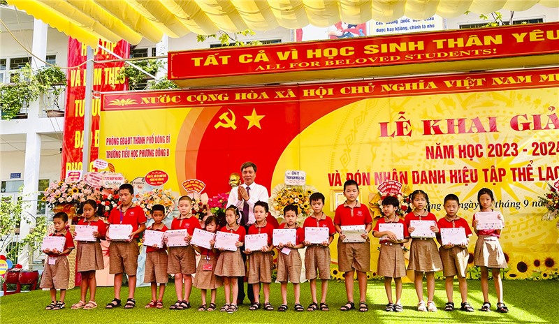 Hòa chung không khí tưng bừng chào đón năm học mới, sáng 5-9, thầy và trò Trường Tiểu học Phương Đông B long trọng tổ chức lễ khai giảng năm học 2023- 2024. Đồng chí Nguyễn Văn Thành, Uỷ viên BTV Thành ủy, Phó Chủ tịch Thường trực UBND thành phố dự, chúc mừng.
